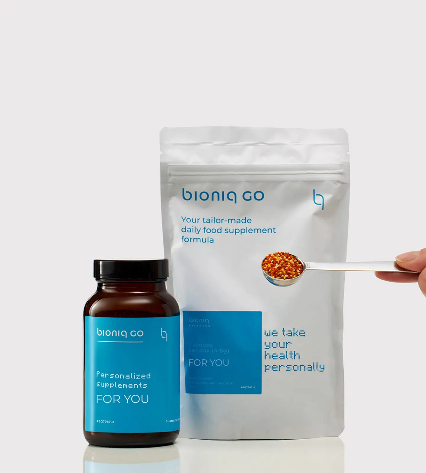 Bioniq is a personalized supplement designed to optimize your health based on your individual needs. Since 2012, we have built a world-leading database of over 6 million biochemical data points and developed a unique algorithm. Using a data-driven approach, Bioniq creates customized nutrient granules that are tailored to your specific health profile, which can be determined through a Quiz (Bioniq GO) or a blood test (Bioniq PRO).